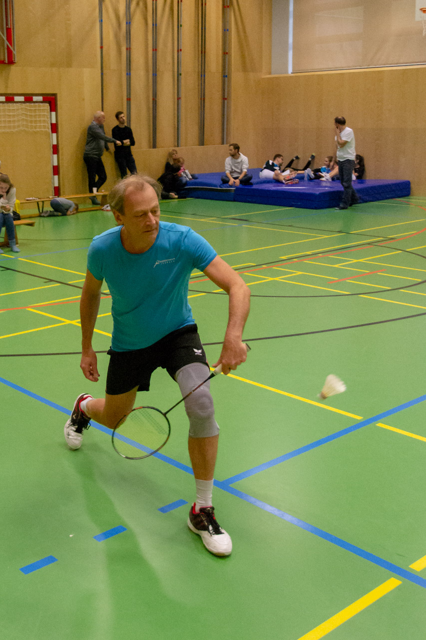 Bei der heurigen Ausgabe dieses Turniers (der 36.!) waren wieder mehr Erwachsene dabei als letztes Jahr, dafür fehlte leider ein Großteil der Anfänger. In Summe aber hatten wir wieder 32 aktive Spieler:innen, wodurch wir wieder 4 Teams mit jeweils 8 verschiedenen Leistungsgruppen bilden konnten. Somit hatte jeder Spieler/jede Spielerin in der entsprechenden Leistungsgruppe 3 Spiele über einen Satz auf 21 Punkte, in denen es darum ging, möglichst viele Punkte zu machen und so dem Team zu helfen, das Turnier zu gewinnen.